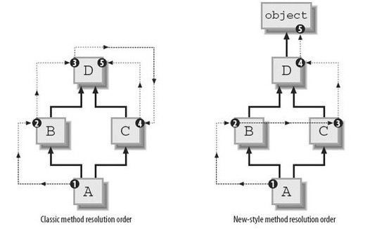 经典类和新式类各自搜索的顺序如下图所示: