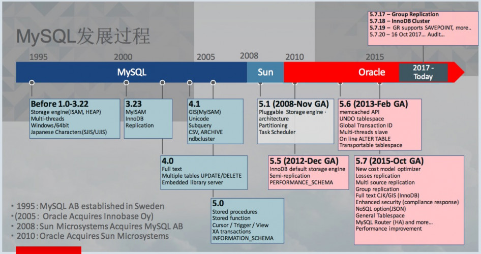 下面开始结合MySQL版本发展时间线来阐述MySQL历史: